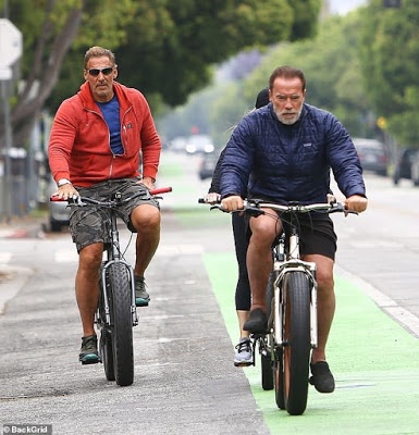 So Arnold Schwarzenegger, 72, hit the nearly streets of Los Angeles for a bike ride with girlfriend Heather Milligan, 45, and good friend Ralf Moeller this Mother's Day.